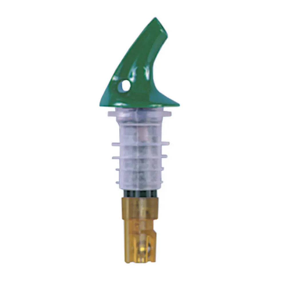 Streamline operations with the Spill-Stop, 384-14, Liquor Pourer. Designed for commercial restaurant use, this liquor pourer is a must-have tool for bartenders and mixologists. With its green color and no collar design, it adds a touch of style to any bar setup. Made in the USA, this pourer is crafted with quality and durability in mind, ensuring it can withstand the demands of a busy restaurant environment. The Spill-Stop Liquor Pourer is easy to use, allowing for precise and controlled pouring, reducing spills and waste. Its efficient design helps to increase efficiency and accuracy, saving time and money. Enhance your bar service and elevate your cocktail presentation with the Spill-Stop Liquor Pourer.