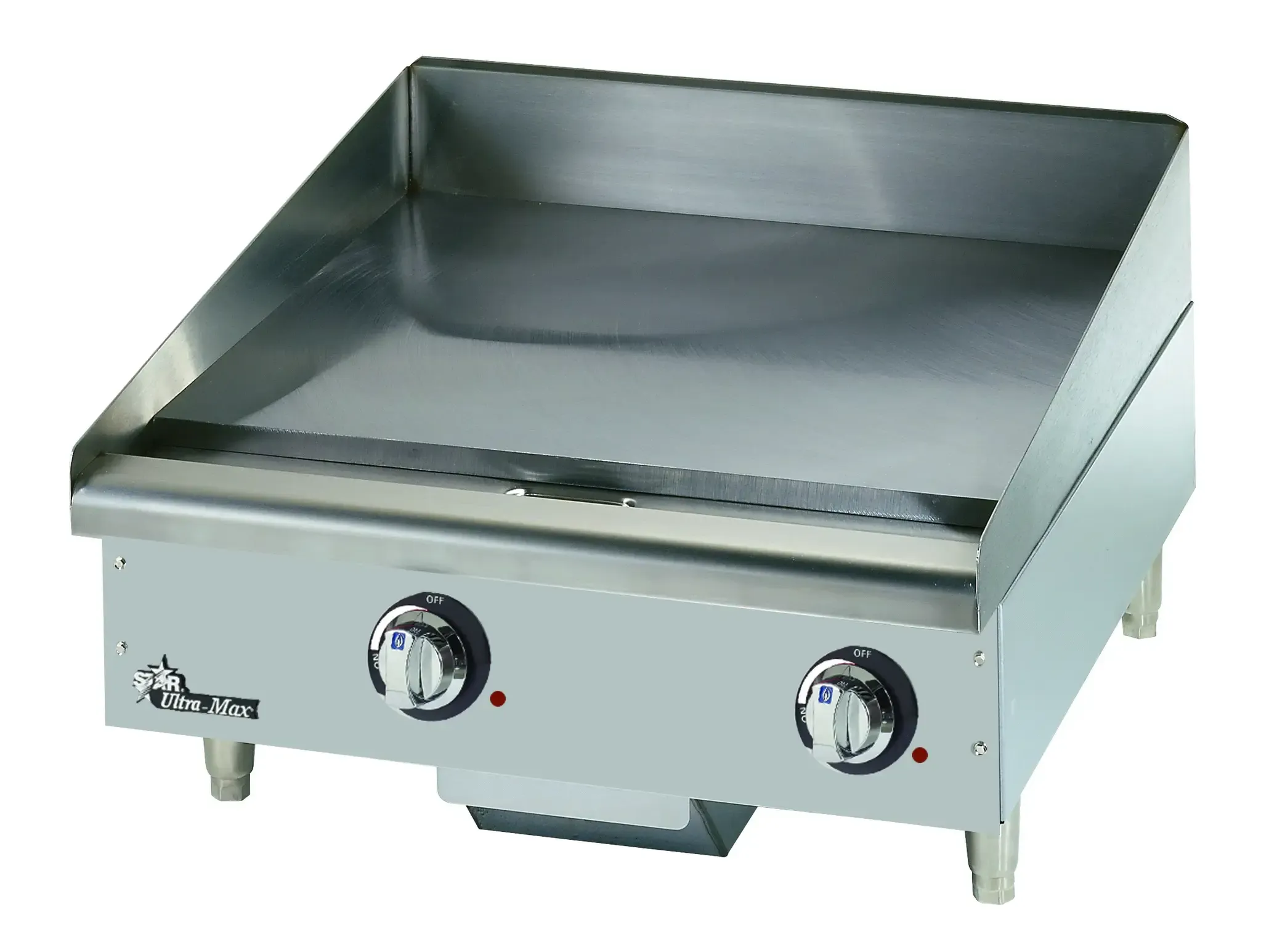 Ultra-Max® electric griddles are designed to be reliable, efficient, and accurate. Each twelve inch section has its own independent temperature control and the griddle surface is one inch thick, providing even cooking of a variety of products at the same time. Widths available in 24", 36", 48", 60" and 72".