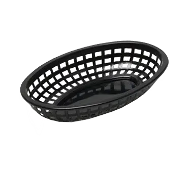 Elevate culinary experiences with TableCraft Products, 1074BK, Basket, Fast Food. This classic oval basket is a must-have for any commercial restaurant. With dimensions of 9-3/8" x 6" x 1-7/8", it provides ample space for serving a variety of dishes. Made in the USA with heat-resistant polyethylene, this basket can withstand temperatures up to 150F/65C, making it perfect for use with heat lamps, dishwashers, and microwaves. The sleek black design adds a touch of sophistication to any table setting. Whether you're serving burgers, fries, or other fast food favorites, this TableCraft basket is a durable and stylish choice. Enhance your restaurant's presentation and efficiency with this versatile and reliable product.