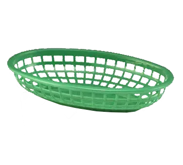 Elevate culinary experiences with TableCraft Products, 1074G, Basket, Fast Food. This classic oval basket is designed to enhance the presentation of your delicious dishes in a commercial restaurant setting. Made in the USA, this heat-resistant basket can withstand temperatures up to 150F/65C, making it perfect for serving hot and crispy fries, onion rings, or chicken tenders. Its durable polyethylene construction ensures long-lasting use, while its dishwasher and microwave-safe design allows for easy cleaning and reheating. With a generous size of 9-3/8" x 6" x 1-7/8", this green basket provides ample space for serving generous portions. Whether you're running a fast-food joint or a casual dining restaurant, this TableCraft Products basket is a must-have for showcasing your culinary creations with style and authenticity.