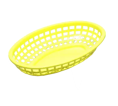 Transform tabletop settings with the TableCraft Products, 1074Y, Basket, Fast Food. This classic oval basket is designed to enhance the dining experience in commercial restaurants. Made in the USA, it is crafted from heat-resistant polyethylene, ensuring durability and longevity. With dimensions of 9-3/8" x 6" x 1-7/8", this yellow basket is perfect for serving a variety of dishes, from burgers and fries to sandwiches and appetizers. Its heat lamp, dishwasher, and microwave-safe properties make it convenient for busy restaurant kitchens. Whether you're running a fast-food joint or a casual dining establishment, this TableCraft basket is a must-have for presenting your culinary creations in style. Elevate your restaurant's ambiance and impress your customers with this versatile and practical serving solution.