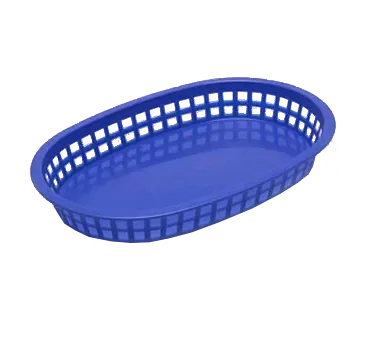 Introducing the TableCraft Products, 1076BL, Basket, Fast Food, a must-have for commercial restaurants looking to elevate their reputation. Made in the USA, this oval Chicago Platter Basket is designed to withstand the demands of a busy restaurant environment. Crafted from heat-resistant polypropylene, it can handle temperatures up to 150F/65C, making it perfect for use with heat lamps, dishwashers, and microwaves. The royal blue color adds a touch of sophistication to any table setting. Its generous size of 10-1/2" x 7" x 1-1/2" ensures ample space for food presentation. Elevate your restaurant's reputation with the TableCraft Products, 1076BL, Basket, Fast Food.