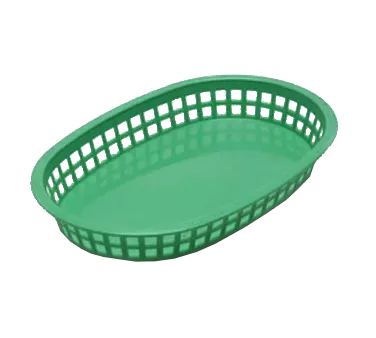 Create a seamless dining experience with the TableCraft Products, 1076G, Basket, Fast Food. This oval Chicago platter basket is perfect for commercial restaurant use. Made in the USA, it is heat resistant up to 150F/65C, making it ideal for use with heat lamps, dishwashers, and microwaves. The green polypropylene material adds a touch of color to your table setting while ensuring durability and longevity. With a size of 10-1/2" x 7" x 1-1/2", this basket provides ample space for serving a variety of fast food items. Enhance your restaurant's presentation and efficiency with this versatile and reliable fast food basket from TableCraft Products.