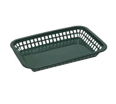 Transform spaces with innovation using the TableCraft Products, 1077FG Fast Food Basket. This rectangular basket is designed to elevate the dining experience in commercial restaurants. Made in the USA with heat-resistant polypropylene, it can withstand temperatures up to 150F/65C, making it perfect for use with heat lamps, dishwashers, and microwaves. The forest green color adds a touch of elegance to any table setting. With dimensions of 10-3/4" x 7-3/4" x 1-1/2", this grande platter basket provides ample space for serving a variety of dishes, from appetizers to main courses. Whether you're running a fast-food joint or a fine dining establishment, this TableCraft Products Fast Food Basket is a must-have for enhancing presentation and efficiency in your restaurant.