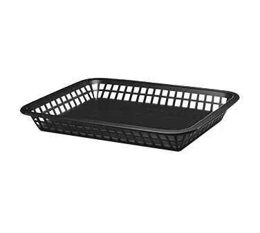 Upgrade your kitchen capabilities with the TableCraft Products, 1079BK, Basket, Fast Food. This rectangular platter basket is designed to enhance the presentation of your dishes, making them look even more appetizing. With dimensions of 11-3/4" x 8-1/2" x 1-1/2", it provides ample space for serving a variety of food items. Made from heat-resistant polypropylene, this basket can withstand temperatures up to 150F/65C, making it suitable for use with heat lamps, dishwashers, and microwaves. Its black color adds a touch of sophistication to any table setting. Manufactured in the USA by TableCraft Products, this basket is of the highest quality and built to last. Elevate your restaurant's dining experience with the TableCraft Products, 1079BK, Basket, Fast Food.
