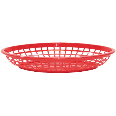 Craft culinary masterpieces with the TableCraft Products, 1084R, Basket, Fast Food. This jumbo oval basket is designed for commercial restaurant use, making it the perfect addition to your establishment. Made in the USA with dishwasher-safe polypropylene, this red basket is not only durable but also easy to clean, ensuring long-lasting use. With dimensions of 11-3/4" x 9" x 1-3/4", it provides ample space for serving a variety of dishes, from burgers and fries to sandwiches and appetizers. Whether you're running a fast food joint or a casual dining establishment, this TableCraft basket is a must-have for serving your delicious creations in style. Elevate your presentation and impress your customers with this high-quality, restaurant-grade basket.