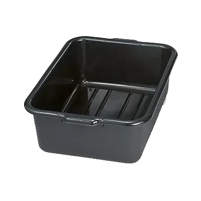 Modernize kitchen efficiency with the TableCraft Products 1537B Bus Box/Tub. Designed for commercial restaurant use, this high-quality tote box is a must-have for any busy kitchen. With its pebbled finish outside and reinforced handles, it offers durability and easy handling. The stackable design allows for efficient storage, saving valuable space in your kitchen. Made from high-density polyethylene, this black bus box is dishwasher safe, making cleanup a breeze. It is FDA approved and NSF certified, ensuring its safety and suitability for food service establishments. Whether you're transporting dishes, storing ingredients, or organizing supplies, the TableCraft Products 1537B Bus Box/Tub is the perfect solution. Upgrade your kitchen operations with this reliable and versatile product. Made in the USA by TableCraft Products, a trusted name in the industry.