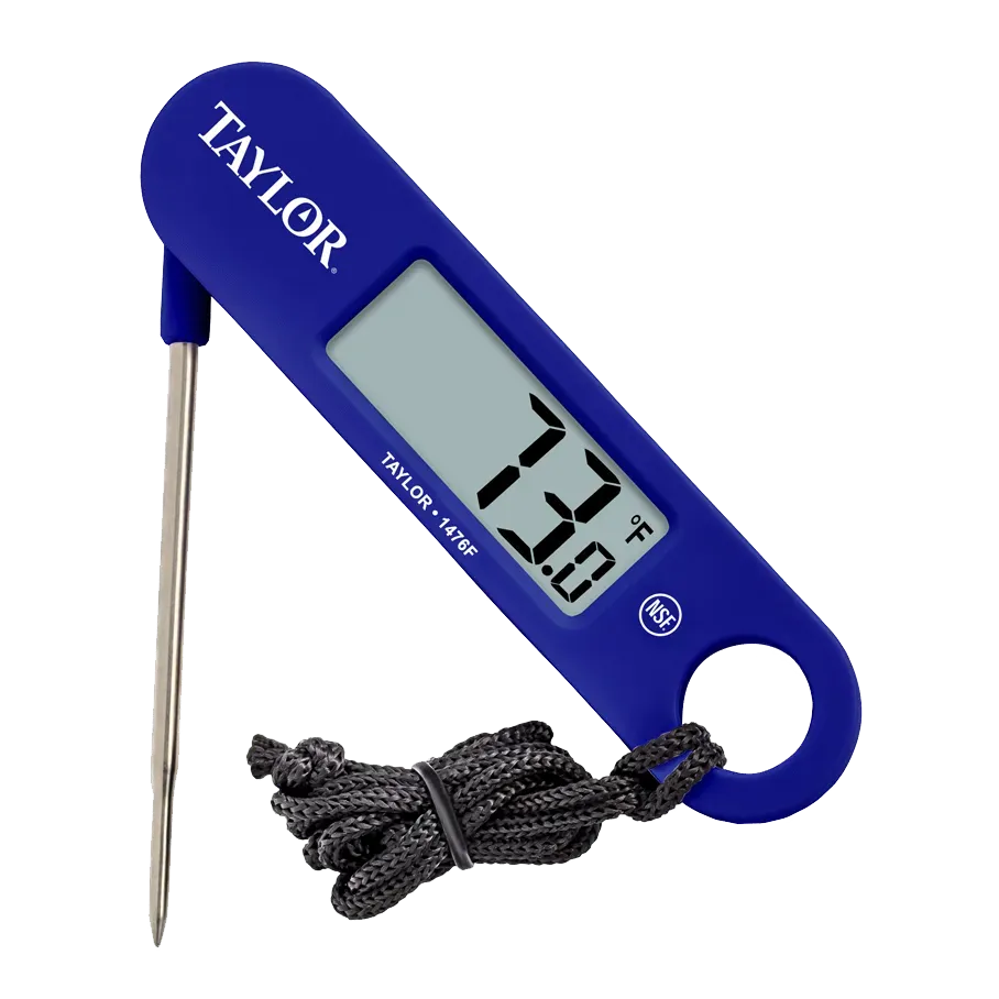 Innovate precision tools with Taylor Precision's 1476FDA Pocket Thermometer. Designed specifically for commercial restaurant use, this digital folding probe thermometer is a must-have for any professional kitchen. With a temperature range of -40 to 250F (-40 to 232C), this thermometer ensures accurate readings for a variety of culinary applications. The 0.6" digital display and 3.43" stem provide clear and easy-to-read measurements, while the on/off button, hold function, and auto-shut off feature make it convenient to use. The 1.5mm step down probe is waterproof, ensuring durability and longevity in a busy kitchen environment. This thermometer also comes with a magnet and lanyard, allowing for easy storage and accessibility. Upgrade your kitchen with Taylor Precision's 1476FDA Pocket Thermometer and experience precise temperature control like never before.