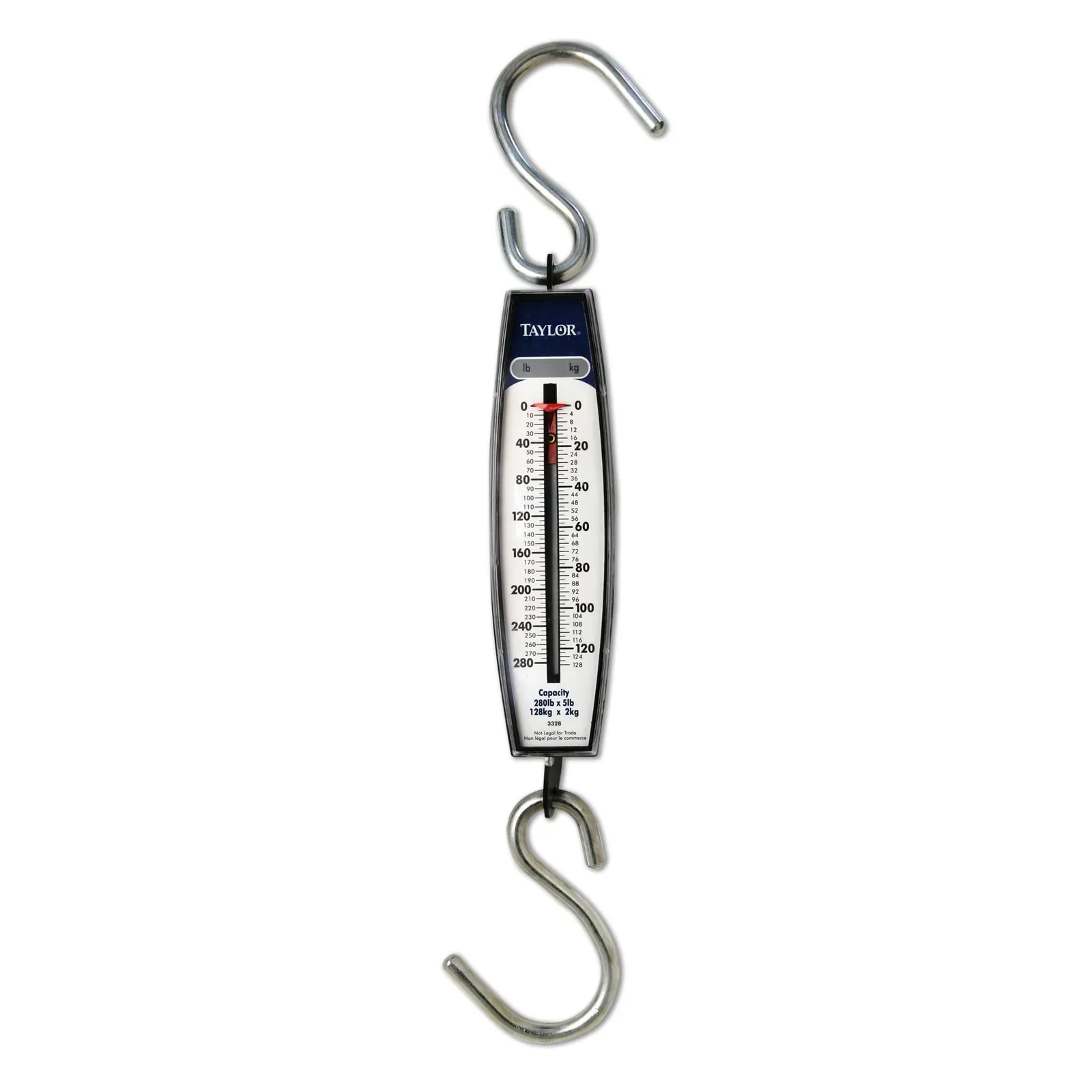 Upgrade kitchen precision with the Taylor Precision 33284104 Hanging Scale. Designed specifically for commercial restaurant use, this industrial-grade scale is a reliable and accurate tool for weighing ingredients, produce, and other items. With a capacity of 280lb/127kg, it can handle heavy loads with ease. The vertical design and top & bottom "S" hooks allow for easy hanging and weighing of items. The steel housing ensures durability and longevity, making it a cost-effective investment for any restaurant. This hanging scale replaces models 3311, 3322, and 3330, offering improved functionality and performance. Trust Taylor Precision, a reputable vendor in the industry, to deliver a high-quality product that meets your restaurant's weighing needs. Upgrade your kitchen today with the Taylor Precision 33284104 Hanging Scale.