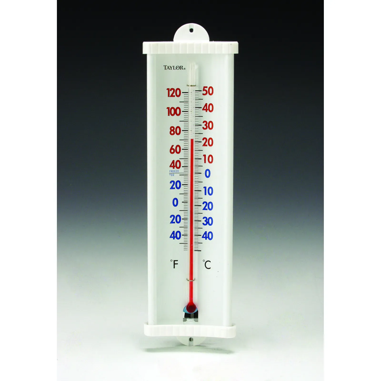 Boost solutions with the Taylor Precision 5132N Thermometer, Window Wall. Designed specifically for commercial restaurant use, this utility wall thermometer is a must-have for any kitchen. With a temperature range of -40 to 120F (-40 to 50C), it ensures accurate readings to help maintain food safety standards. The white aluminum back with plastic endcaps not only adds durability but also gives it a sleek and professional look. Weather resistant and rust-proof, this thermometer is built to withstand the demands of a busy kitchen environment. Whether you're monitoring the temperature of your walk-in cooler, oven, or prep station, the Taylor Precision 5132N Thermometer, Window Wall is the reliable and accurate choice for commercial restaurant use.