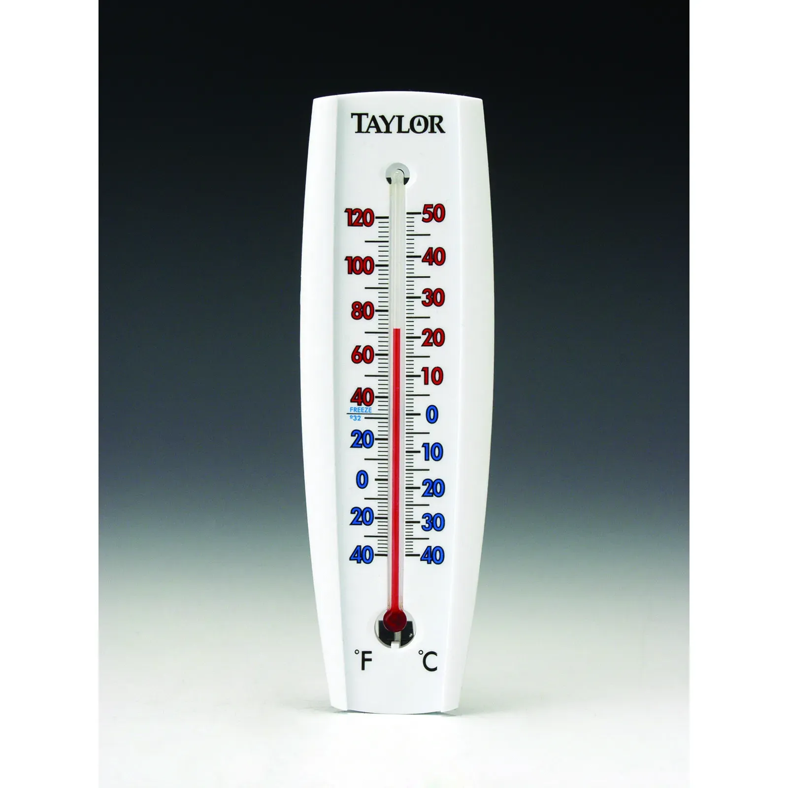 Improve precision with the Taylor Precision 5154 Thermometer, Window Wall. Designed specifically for commercial restaurant use, this wall thermometer features a large easy-to-read face with recessed tube, ensuring accurate temperature readings at a glance. With a temperature range of -40 to 120F (-40 to 50C), this thermometer is perfect for monitoring indoor and outdoor conditions. The curved look and large, easy-read red and blue numerals make it effortless to read from a distance, allowing busy restaurant staff to quickly assess temperature changes. Made with weather-resistant and rust-proof materials, this thermometer is built to withstand the demands of a commercial kitchen. Trust Taylor Precision for reliable and durable thermometers that meet the needs of your commercial restaurant.