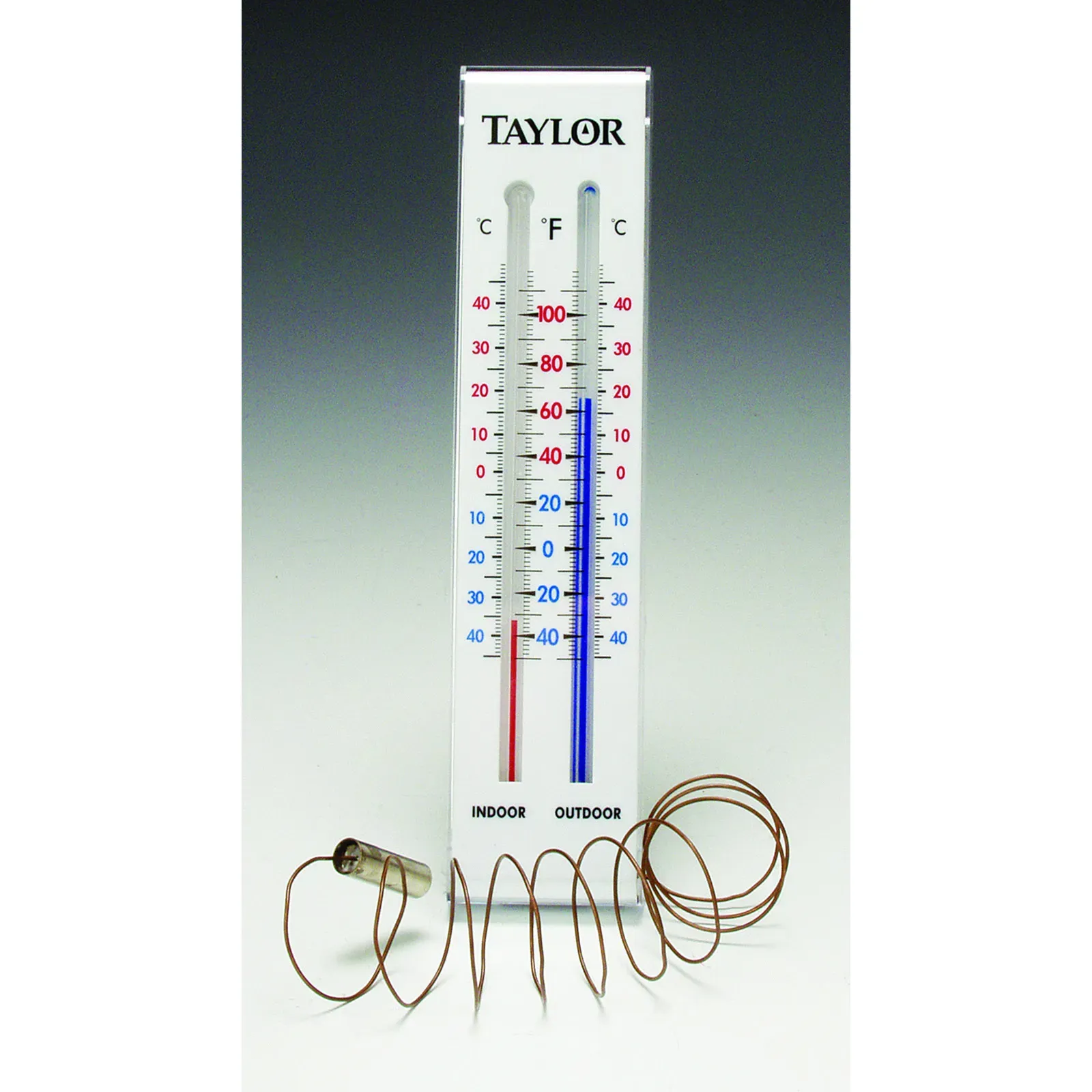 Modernize innovation with the Taylor Precision 5327 Thermometer. Designed for commercial restaurant use, this window/wall indoor/outdoor thermometer is a must-have for any food establishment. With a temperature range of -40° to 100°F (-40° to 40°C), you can easily monitor both indoor and outdoor temperatures. The extendable tubing allows you to conveniently read the outdoor temperature from inside, saving you time and effort. Its accuracy and durability ensure reliable temperature readings, helping you maintain optimal conditions for food storage and preparation. Upgrade your restaurant's temperature monitoring system with the Taylor Precision 5327 Thermometer and experience the convenience and precision it offers.