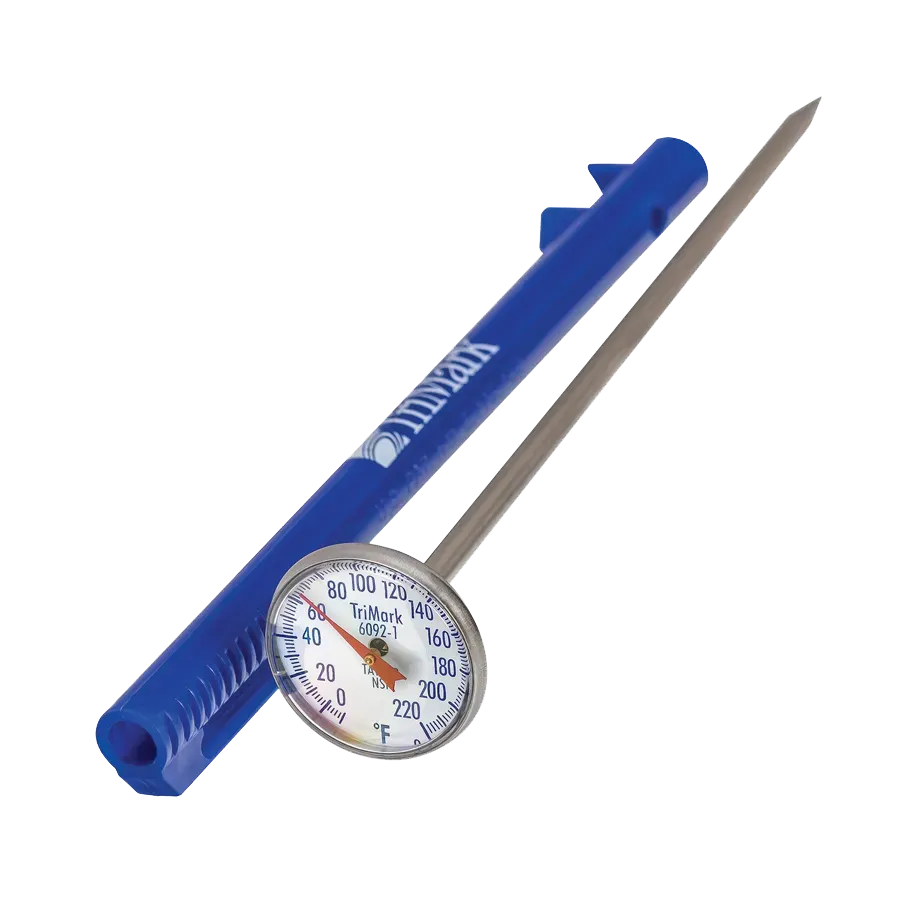Innovate measurements with the Taylor Precision, 6092NBLBC, Thermometer, Pocket. This 1" dial thermometer is a must-have for any commercial restaurant. With a temperature range of 0° to 220°F (-10° to 100°C), it ensures accurate readings for all your culinary creations. The 5" stem allows for easy insertion into food, while the pocket sleeve with a patented built-in calibration feature ensures precise measurements every time. The shatterproof lens and stainless steel construction guarantee durability, even in the busiest kitchen environments. Plus, the blue color coding makes it perfect for monitoring fish temperatures, ensuring food safety and compliance with HACCP guidelines. NSF certified, this thermometer is a reliable tool that meets the highest standards of quality and safety.