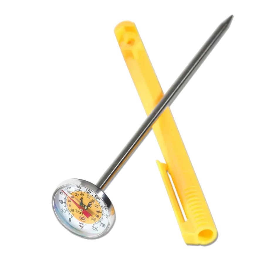 Innovate measurements with the Taylor Precision, 6092NYLBC, Pocket Thermometer. Designed specifically for commercial restaurant use, this thermometer is a must-have tool for ensuring food safety and maintaining HACCP standards. With a temperature range of 0° to 220°F (-10° to 100°C), it provides accurate readings for a variety of culinary applications. The 1" dial and 5" stem make it easy to insert into meats, soups, and sauces, while the pocket sleeve with a patented built-in calibration feature ensures precise measurements every time. The shatterproof lens and stainless steel construction guarantee durability in a fast-paced kitchen environment. This thermometer is color-coded yellow for poultry, allowing for quick identification and preventing cross-contamination. NSF certified and sold in case quantities of 6, the Taylor Precision Pocket Thermometer is the ideal choice for professional chefs and restaurant owners who prioritize food safety and quality.