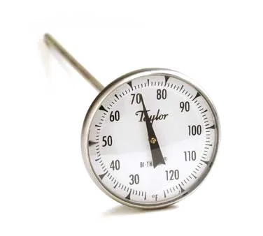 Improve efficiency with the Taylor Precision 8212J Pocket Thermometer. Designed for commercial restaurant use, this thermometer is a must-have tool for ensuring food safety and quality. With a temperature range of 25° to 125°F and an accuracy of +/- 2°F, you can rely on its superior grade Bi-Therm technology to provide accurate readings every time. The 1-3/4" dial features high visibility graphics and an extended scale design, making it easy to read and interpret. The 8" stem allows for deep penetration into food, while the stainless steel exterior ensures durability and easy cleaning. The shock protection and recalibratable feature further enhance its reliability. Packed in individual boxes, this thermometer is convenient to store and transport. Trust Taylor Precision for precise temperature measurements and elevate your restaurant's food safety standards.