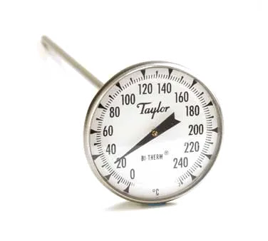 Optimize tools with the Taylor Precision, 8238J, Thermometer, Pocket. This 1.75" superior grade Bi-Therm thermometer is perfect for commercial restaurant use. With a temperature range of 0° to 250°C and 2°C divisions, it provides accurate readings for all your cooking needs. The 1-3/4" superior grade dial with high visibility graphics ensures easy reading, while the anti-parallax dial/case and shock protection guarantee durability in a busy kitchen environment. The extended scale design and 3 point calibration ensure precise measurements every time. The stainless steel exterior adds a professional touch and is easy to clean. Packed in individual boxes, this thermometer is convenient to store and transport. Trust Taylor Precision, a reputable vendor in the industry, to deliver a reliable and accurate thermometer that will enhance your restaurant's efficiency and food safety protocols.