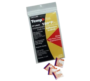 Upgrade for efficiency with the Taylor Precision, 8750 Disposable Thermometer. Designed specifically for commercial restaurant use, this thermometer is a must-have tool for ensuring food safety and maintaining quality standards. The TempRite 180°F/82°C adhesive dishwasher temp labels provide accurate temperature readings with a +/-2°F accuracy, allowing you to monitor the temperature of your dishwasher and ensure proper sanitization. The stick-on adhesive makes it easy to apply the labels to your dishwasher, and the clear and concise temperature display ensures quick and easy reading. Trust Taylor Precision, a reputable vendor in the industry, to provide you with reliable and durable thermometers that meet the demands of a busy commercial kitchen. Upgrade your restaurant's efficiency and food safety with the Taylor Precision, 8750 Disposable Thermometer.