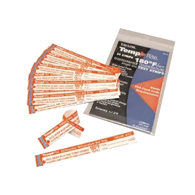 Innovate for efficiency with Taylor Precision's 8767J Disposable Thermometer. Designed specifically for commercial restaurant use, these TempRite 180º/82ºC dishwasher temp test strips are a must-have tool for ensuring food safety and hygiene. With 25 strips per pack, this product allows you to easily monitor and verify the temperature of your dishwasher, ensuring that it reaches the necessary 180º (82ºC) for effective sanitization. The disposable nature of these thermometers eliminates the need for time-consuming and costly calibration, making them a convenient and cost-effective solution for busy restaurant kitchens. Trust Taylor Precision's expertise in temperature measurement and choose the 8767J Disposable Thermometer for accurate and reliable results in your commercial kitchen.