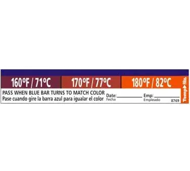 Transform reliability with Taylor Precision's 8769 Disposable Thermometer. Designed specifically for commercial restaurant use, this thermometer is a game-changer in ensuring food safety and quality. The TempRite160°/170°/180°F and 71°/76°/82°C adhesive dishwasher temp Labels included in this pack of 27 provide accurate temperature readings for dishwashers, guaranteeing that your dishes are thoroughly sanitized. With its 3-in-1 functionality, this thermometer allows you to monitor temperatures at 160°F (71°C), 170°F (77°C), and 180°F (82°C), ensuring compliance with health and safety regulations. Trust Taylor Precision's Disposable Thermometer to deliver precise temperature measurements, giving you peace of mind and maintaining the highest standards of cleanliness and hygiene in your commercial kitchen.