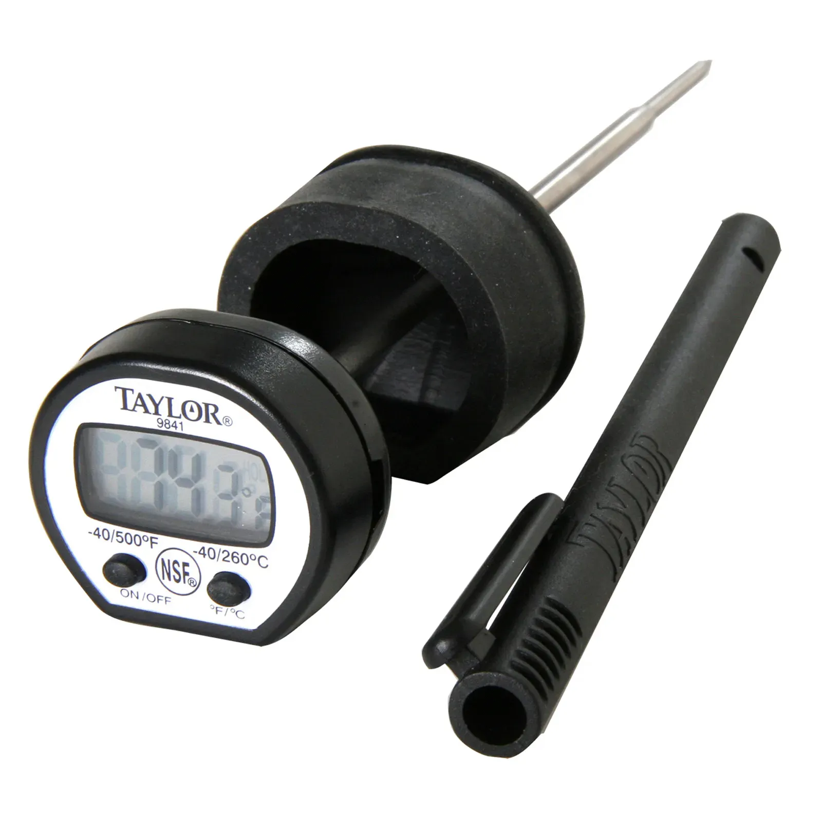 Innovate measurements with the Taylor Precision 9841RB Pocket Thermometer. Designed for commercial restaurant use, this high-temp digital thermometer is a must-have tool for ensuring food safety and quality. With a temperature range of -40 to 500F (-40 to 260C) and an accuracy of +/- 2F, you can rely on precise readings every time. The 0.3" LCD readout provides clear visibility, while the step-down probe allows for easy insertion into food. The protective rubber boot ensures durability in a busy kitchen environment. The thermometer features an on/off button and an auto-off feature for battery conservation. With 1-second updates and a 5" stainless steel stem, you can quickly and efficiently monitor food temperatures. The thermometer comes with a storage sleeve with a clip for convenient storage and easy access. Trust Taylor Precision for accurate and reliable temperature measurements in your restaurant.