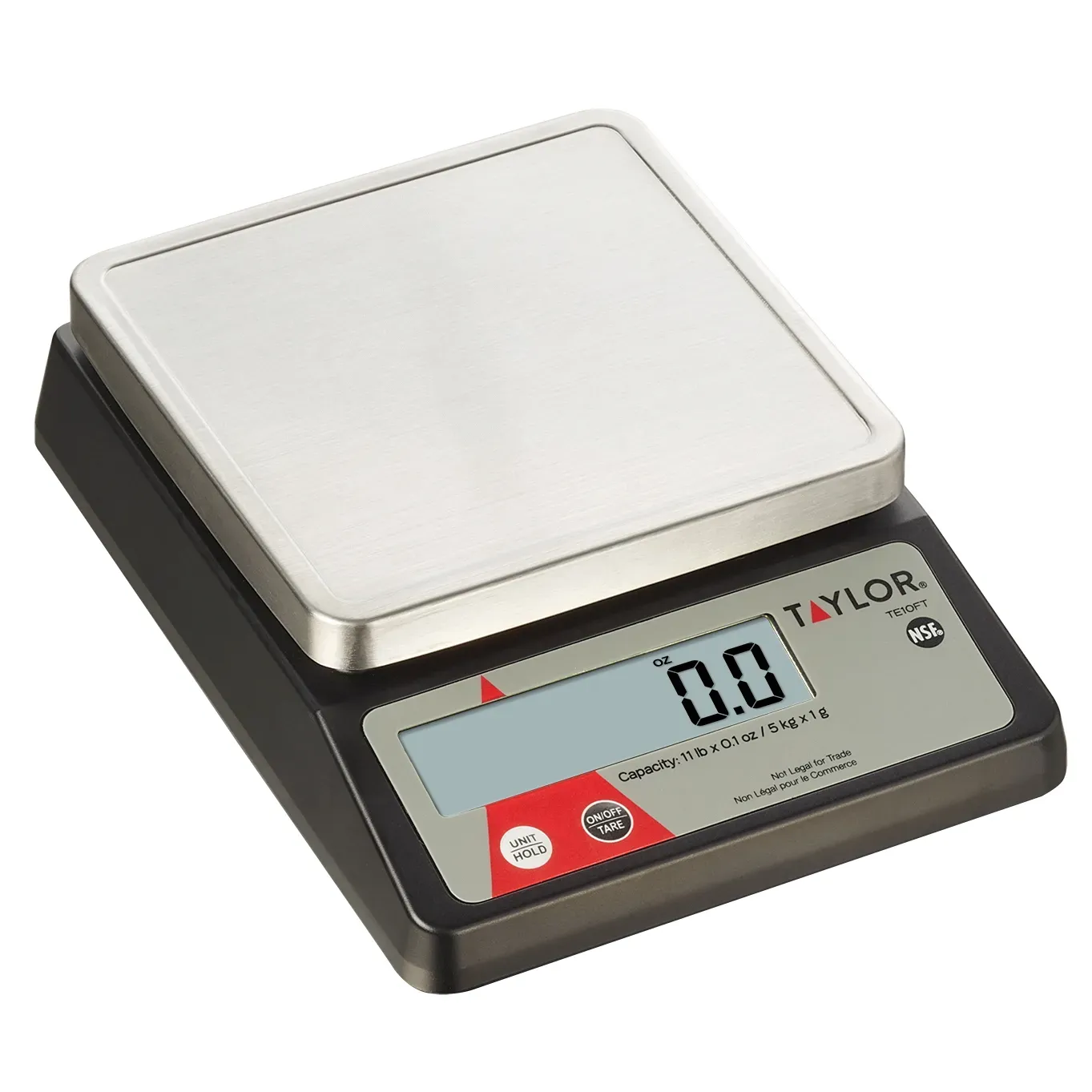 Boost solutions with the Taylor Precision TE10FT Digital Portion Scale. Designed specifically for commercial restaurant use, this compact scale is a game-changer in the kitchen. With a capacity of 11 lb. x .1 oz. (or 5 kg x 1 g), it provides precise measurements for portion control, ensuring consistent and accurate servings every time. The 0.9" LCD display is easy to read, and the 5.4" x 5.4" stainless steel platform with a marine edge is durable and hygienic. The tare and hold functions allow for easy weighing of ingredients and the auto-off feature helps conserve battery life. Powered by either the included AC adaptor or (2) AAA batteries (not included), this NSF-certified scale is a reliable and versatile addition to any commercial kitchen. Trust Taylor Precision for quality and performance.