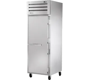 Elevate your culinary experience with the True Manufacturing STA1R-1S-HC Refrigerator, Reach-In. This top-of-the-line refrigerator is designed to meet the demanding needs of commercial restaurants. With its stainless steel door and lock, cam-lift hinges, and digital temperature control, you can trust that your ingredients will be stored safely and securely. The three chrome shelves provide ample space for organizing your perishables, while the LED interior lights make it easy to find what you need, even in low-light conditions. The stainless steel front and sides, along with the aluminum interior sides and walls, ensure durability and easy cleaning. The stainless floor and ceiling add an extra layer of protection against spills and leaks. Equipped with 5" castors, this refrigerator is easy to move and position wherever you need it. Plus, with its ENERGY STAR certification and use of R290 Hydrocarbon refrigerant, you can save on energy costs while reducing your environmental impact. Trust True Manufacturing to deliver the quality and reliability you need for your commercial kitchen.