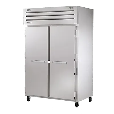 Mobilize your kitchen with the True Manufacturing STA2DT-2S Refrigerator Freezer. This two-section reach-in unit is designed to meet the demands of a busy commercial restaurant. With its stainless steel doors, locks, and cam-lift hinges, this refrigerator freezer ensures durability and security. The digital temperature control allows for precise temperature management, while the aluminum interior and chrome shelves provide ample storage space for your ingredients and products. The LED interior lights not only enhance visibility but also add a touch of sophistication to your kitchen. Made in the USA, this True Manufacturing refrigerator freezer is UL EPH Classified and cULus certified, guaranteeing its quality and safety. With a 1/3HP refrigerator and a 1/2HP freezer, this unit delivers powerful performance. Whether you're storing fresh produce or frozen goods, the True Manufacturing STA2DT-2S Refrigerator Freezer is the perfect addition to any commercial kitchen.