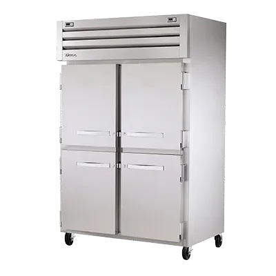 Boost your restaurant's performance with the True Manufacturing STG2DT-4HS Refrigerator Freezer. This top-of-the-line reach-in unit is designed to meet the demanding needs of a commercial kitchen. With its four stainless steel half doors, locks, and cam-lift hinges, you can easily access and organize your ingredients. The digital temperature control ensures precise temperature management, while the six gray shelves provide ample storage space. The LED interior lights illuminate the interior, making it easy to find what you need. Made in the USA, this refrigerator freezer is built to last with its stainless steel front, aluminum sides, and aluminum interior. The 5" castors allow for easy mobility, and the R 1/3Hp and F 1/2Hp compressors ensure efficient cooling and freezing. Trust True Manufacturing to deliver reliable and high-quality refrigeration solutions for your restaurant.