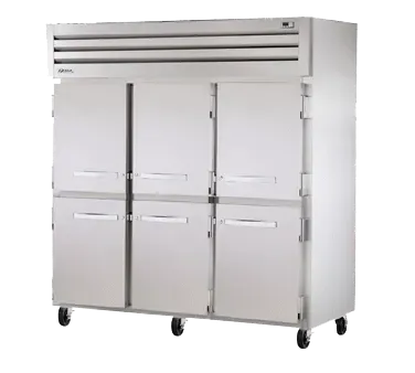 Cook with confidence and flair with the True Manufacturing STG3F-6HS Freezer, Reach-In. This top-of-the-line freezer is designed to meet the demands of a busy commercial restaurant. With its three-section design and six stainless steel half doors, you'll have plenty of space to store all your frozen ingredients and prepared dishes. The cam-lift hinges and locks on each door ensure that your items are securely stored and easily accessible. The digital temperature control allows you to set the freezer to -10F, ensuring that your food stays frozen at the perfect temperature. The nine gray shelves provide ample storage space, and the LED interior lights make it easy to find what you're looking for. Made in the USA, this freezer is built to last and is UL EPH Classified for added peace of mind. Upgrade your restaurant's storage capabilities with the True Manufacturing STG3F-6HS Freezer, Reach-In.