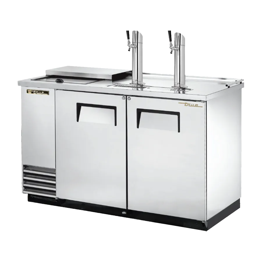 Maximize your food service potential with the True Manufacturing TDD-2CT-S-HC Draft Beer Cooler. This commercial-grade cooler is designed to meet the demands of a busy restaurant environment. With a stainless steel counter top and lid, it offers durability and a sleek appearance that will enhance the aesthetics of your establishment. The cooler features two solid hinged doors with locks, ensuring the security of your valuable kegs. Inside, you'll find a PVC coated adjustable wire shelf, providing flexibility for storing different sizes of kegs. The LED interior light illuminates the contents, making it easy to locate and access your favorite brews. The cooler also boasts two 3" dia. insulated beer columns with a single faucet draft arm, allowing you to serve multiple beers simultaneously. Made in the USA and ENERGY STAR certified, this True Manufacturing Draft Beer Cooler combines quality, efficiency, and reliability to elevate your restaurant's beverage service.