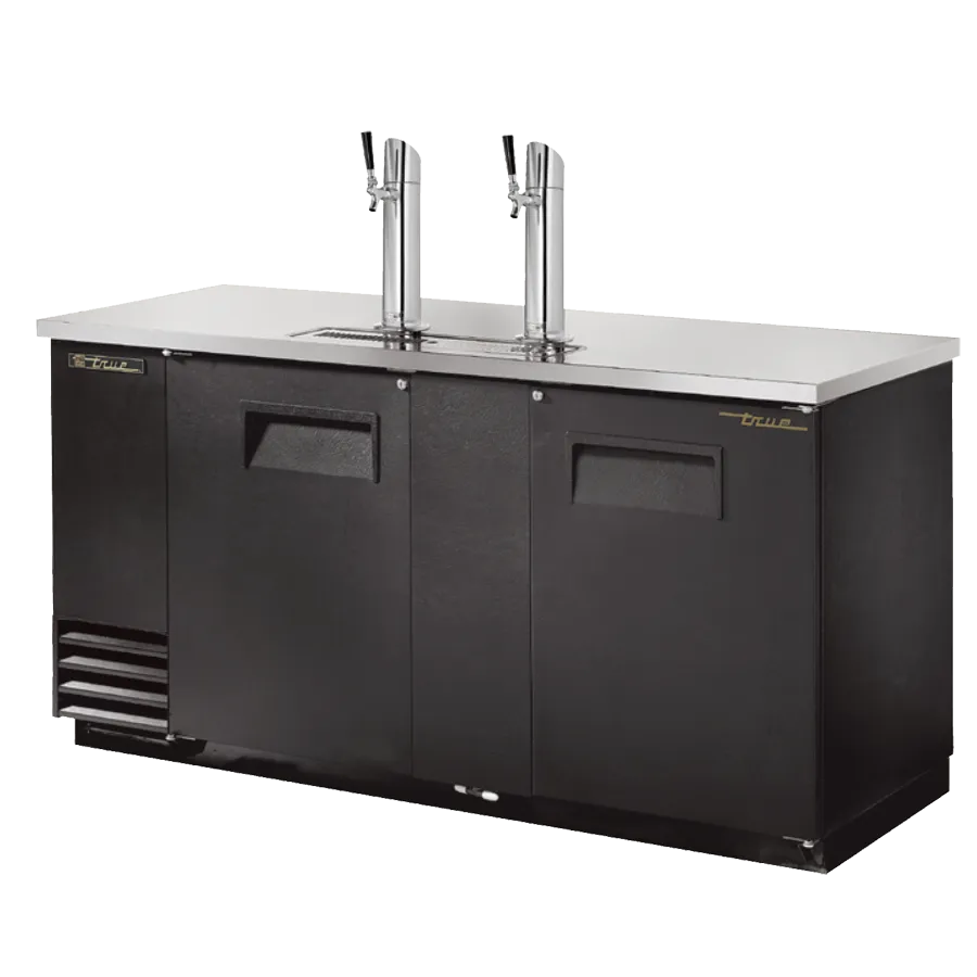Equip your commercial kitchen with the True Manufacturing TDD-3-HC Draft Beer Cooler. This top-of-the-line cooler is designed to meet the needs of busy restaurants and bars. With a capacity for three half kegs, it ensures you always have a variety of draft beers on tap to satisfy your customers' thirst. The stainless steel countertop provides a durable and easy-to-clean surface, while the two solid hinged doors with locks keep your inventory secure. The LED interior light illuminates the contents, making it easy to find the perfect brew. The insulated beer columns with a single faucet draft arm ensure that each pour is perfectly chilled. The black vinyl exterior and galvanized interior with a stainless steel floor not only look sleek but also withstand the rigors of a commercial kitchen. With its ENERGY STAR rating and use of R290 Hydrocarbon refrigerant, this cooler is not only efficient but also environmentally friendly. Trust True Manufacturing, a reputable vendor known for their high-quality products made in the USA. Upgrade your establishment with the True Manufacturing TDD-3-HC Draft Beer Cooler.