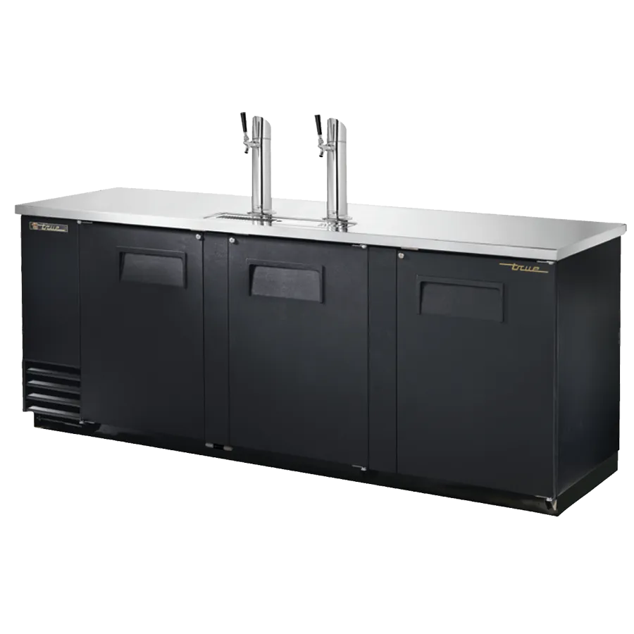 Culinary artistry redefined with True Manufacturing's TDD-4-HC Draft Beer Cooler. This commercial-grade cooler is designed to elevate your restaurant's beverage service to new heights. With a capacity to hold four half kegs, this cooler ensures that you never run out of your customers' favorite brews. The stainless steel countertop provides a sleek and durable surface for serving drinks, while the three solid hinged doors with locks keep your inventory secure. The two insulated beer columns with a single faucet draft arm allow for easy pouring and serving. The black vinyl front and sides exterior add a touch of sophistication to your establishment, while the galvanized interior with a stainless steel floor ensures easy cleaning and maintenance. With its ENERGY STAR certification and use of R290 Hydrocarbon refrigerant, this cooler is not only efficient but also environmentally friendly. Elevate your beverage service with the True Manufacturing TDD-4-HC Draft Beer Cooler.