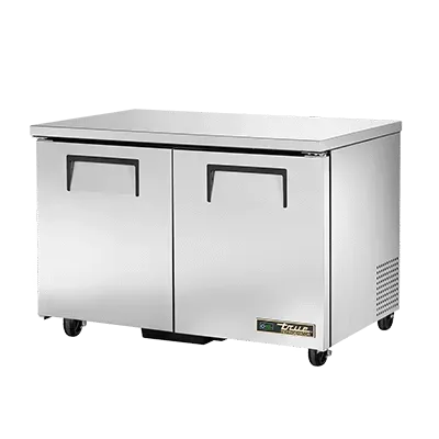 Deliver food perfection with the True Manufacturing TUC-48-HC Refrigerator. This undercounter reach-in refrigerator is designed to meet the demanding needs of commercial restaurants. With its stainless steel top and sides, it not only looks sleek but also ensures durability and easy cleaning. The two stainless steel doors provide easy access to the spacious interior, which features four shelves and an aluminum interior with a stainless steel floor. The temperature range of 33-38 F ensures that your ingredients and beverages stay fresh and chilled. The 5" castors make it easy to move the refrigerator for cleaning or rearranging. Made in the USA, this refrigerator is not only reliable but also energy-efficient, thanks to the R290 Hydrocarbon refrigerant and 1/5 HP compressor. Trust True Manufacturing to deliver the quality and performance your restaurant needs.