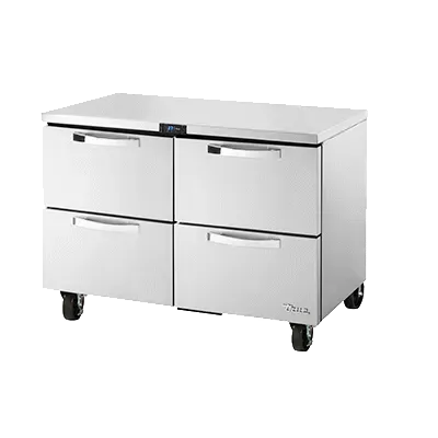 Mobilize your kitchen with the True Manufacturing TUC-48D-4-HC~SPEC3 Undercounter Refrigerator. This top-of-the-line refrigerator is designed to meet the demands of a busy commercial restaurant. With its SPEC Package 3, it offers a range of features that make it a valuable addition to any kitchen. The 16-gauge stainless steel top, sides, and back ensure durability and easy cleaning, while the stainless steel interior provides a hygienic storage space. The four drawers are spacious enough to accommodate a 12" x 18" x 6" food pan, allowing for efficient organization and easy access to ingredients. The electronic temperature control with a digital display ensures precise temperature management, keeping your perishable items fresh and safe. With its 5" castors, this refrigerator can be easily moved around for cleaning or rearranging. Made in the USA, this True Manufacturing refrigerator is cULus, UL EPH Classified, and CE certified, guaranteeing its quality and reliability. Upgrade your kitchen with the TUC-48D-4-HC~SPEC3 and experience the convenience and efficiency it brings to your restaurant operations.