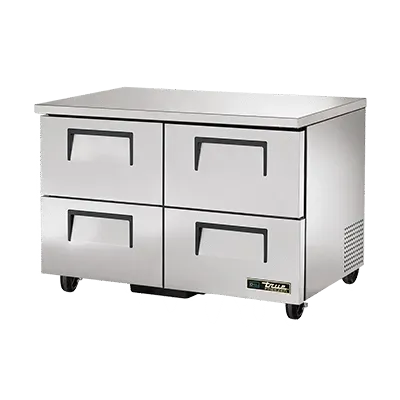 Boost your restaurant's performance with the True Manufacturing TUC-48F-D-4-HC Freezer. This undercounter reach-in freezer is designed to meet the demands of a busy commercial kitchen. With its stainless steel top and sides, it not only looks sleek but also ensures durability and easy cleaning. The freezer features four drawers, each capable of accommodating a 12" x 18" x 6" pan (pan not included), providing ample storage space for your ingredients. The aluminum interior with a stainless steel floor further enhances its durability and hygiene. Equipped with 5" castors, this freezer can be easily moved for cleaning or rearranging your kitchen layout. The TUC-48F-D-4-HC uses R290 Hydrocarbon refrigerant, which is not only environmentally friendly but also ensures efficient cooling. With a 1/2 HP compressor, this freezer delivers reliable performance, while the 115v/60/1-ph power supply ensures compatibility with standard outlets. Trust True Manufacturing, a reputable brand known for its quality and reliability, and invest in the TUC-48F-D-4-HC Freezer to enhance your restaurant's efficiency and productivity.