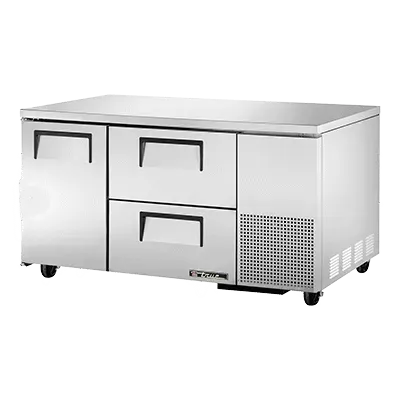 Elevate your culinary experience with the True Manufacturing TUC-60-32D-2-HC Undercounter Refrigerator. This top-of-the-line refrigerator is designed to meet the demanding needs of commercial restaurants. With its stainless steel top and sides, it not only looks sleek and professional but also ensures durability and easy cleaning. The refrigerator features a stainless steel door and two shelves, providing ample storage space for your ingredients. Additionally, it has two drawers that can accommodate two 12" x 20" x 8" food pans (not included), allowing for efficient organization and easy access to your ingredients. The aluminum interior with a stainless steel floor ensures optimal temperature retention, while the R290 Hydrocarbon refrigerant and 1/10 HP compressor guarantee energy efficiency. With its compact size and 5" castors, this undercounter refrigerator can be conveniently placed anywhere in your kitchen. Trust True Manufacturing, a reputable brand known for its quality and reliability, and invest in the TUC-60-32D-2-HC to enhance your restaurant's efficiency and productivity.