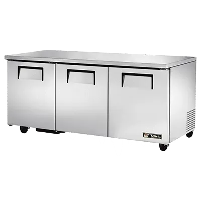 Elevate your dining experience with the True Manufacturing TUC-72-HC Refrigerator. This undercounter reach-in refrigerator is designed to meet the demands of a commercial restaurant setting. With its stainless steel top and sides, it not only looks sleek but also ensures durability and easy cleaning. The three stainless steel doors provide ample storage space, while the six adjustable PVC wire shelves allow for flexible organization. The aluminum interior with a stainless steel floor guarantees optimal temperature retention and hygiene. Equipped with 5" castors, this refrigerator can be easily moved for cleaning or rearranging. The TUC-72-HC uses R290 Hydrocarbon refrigerant, which is not only environmentally friendly but also ensures efficient cooling. With a 1/4 HP compressor, this refrigerator delivers reliable performance. Made in the USA and certified by cULus and UL EPH Classified, you can trust the quality and safety of this True Manufacturing refrigerator. Upgrade your restaurant's refrigeration system with the TUC-72-HC and enjoy enhanced efficiency and convenience.