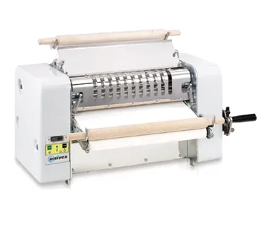 Equip Your Kitchen for Excellence with the Univex T50 Dough Sheeter. This vertical, bench model dough sheeter is designed to streamline your restaurant's dough preparation process. With adjustable hard chrome polished cylinders ranging from 0" to .71", you can easily achieve the desired thickness for your dough. The 18-1/2" wide belt drive and 20" maximum dough width allow for efficient and consistent sheeting. The heavy-duty hard wood rolling pins ensure durability and smooth operation. Powered by a 1/2 hp motor, this dough sheeter is reliable and efficient. It operates on 115v/60/1-ph power with 7.4 amps, and it comes with a cord and plug for easy installation. With cETLus and ETL-Sanitation certifications, you can trust the quality and safety of this Univex dough sheeter. Upgrade your restaurant's dough preparation capabilities with the Univex T50 Dough Sheeter.