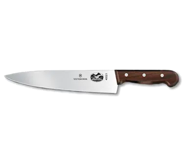 Precision Meets Kitchen Efficiency with the Victorinox Swiss Army, 5.2000.25-X2, Chef Knife. This professional-grade knife is a must-have for any commercial restaurant. With its 10" blade and 2-1/4" width at the handle, it offers the perfect balance of size and control for slicing, dicing, and chopping ingredients with precision. The rosewood handle not only adds a touch of elegance but also provides a comfortable grip, ensuring hours of effortless cutting. Packaged in a convenient clamshell/peggable package, this knife is ready to be put to work right away. Whether you're a seasoned chef or a culinary enthusiast, this Victorinox Swiss Army knife is designed to meet the demands of a busy commercial kitchen. Invest in quality and efficiency with the Victorinox Swiss Army, 5.2000.25-X2, Chef Knife.