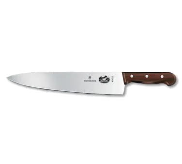 Optimize Your Culinary Workflow with the Victorinox Swiss Army, 5.2000.31-X1, Chef Knife. This professional-grade knife is a must-have for any commercial restaurant. With a 12" blade and a 2-1/4" width at the handle, it offers exceptional precision and control, allowing you to effortlessly slice, dice, and chop ingredients with ease. The rosewood handle not only adds a touch of elegance but also provides a comfortable grip, reducing fatigue during long hours in the kitchen. Packaged in a convenient clamshell/peggable package, this knife is ready to use right out of the box. Whether you're a seasoned chef or a culinary enthusiast, the Victorinox Swiss Army Chef Knife is designed to enhance your culinary skills and streamline your cooking process. Invest in this reliable and durable knife to elevate your restaurant's efficiency and deliver exceptional dishes to your customers.