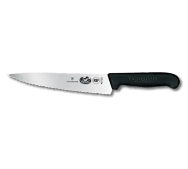 Efficiency Meets Culinary Mastery with the Victorinox Swiss Army, 5.2033.19, Chef Knife. This professional-grade knife is a must-have for any commercial restaurant. With its 7-1/2" blade and wavy edge, it effortlessly cuts through meats, vegetables, and more, saving you time and effort in the kitchen. The black Fibrox Pro handle provides a comfortable and slip-resistant grip, ensuring safety and precision during use. Designed by Victorinox Swiss Army, a trusted name in cutlery, this knife is built to last and withstand the demands of a busy restaurant kitchen. It is NSF certified, guaranteeing its quality and suitability for commercial use. Whether you're a seasoned chef or a culinary enthusiast, this Chef Knife is the perfect tool to elevate your cooking skills and deliver exceptional dishes to your customers. Invest in the Victorinox Swiss Army Chef Knife and experience the difference it makes in your restaurant's efficiency and culinary mastery.