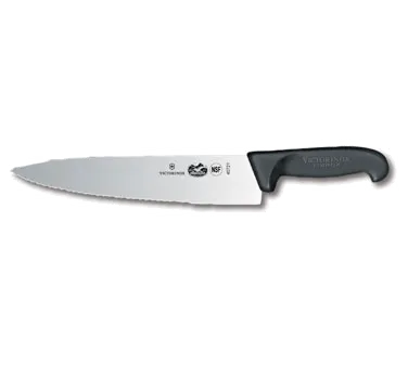 Effortless Culinary Excellence with the Victorinox Swiss Army, 5.2033.25-X1 Chef Knife. This professional-grade knife is a must-have for any commercial restaurant. With its 10" wavy/straight edge blade, it effortlessly cuts through meats, vegetables, and more, ensuring precision and efficiency in every slice. The Fibrox nylon handle provides a comfortable grip, while the slip-resistant design ensures safety during use. The knife comes in a clamshell/peggable package, making it easy to store and display. NSF certified, it meets the highest standards of quality and hygiene. Whether you're a seasoned chef or a culinary enthusiast, this Victorinox Swiss Army knife is the perfect tool to elevate your cooking skills. Experience the reliability and durability that Victorinox is known for and take your culinary creations to the next level.
