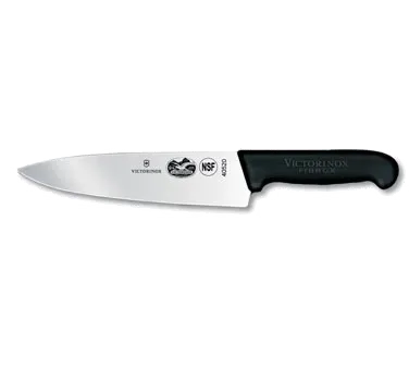 Efficiency for the Modern Kitchen with Victorinox Swiss Army, 5.2063.20-X4, Chef Knife. This professional-grade knife is a must-have for any commercial restaurant. With its 8" blade and 2" width at the handle, it offers the perfect balance of precision and control. The Fibrox nylon handle provides a comfortable grip, while the slip-resistant design ensures safety during use. The knife comes in a clamshell/peggable package, making it easy to store and display. It is NSF certified, guaranteeing its quality and suitability for use in a commercial kitchen. Whether you're slicing, dicing, or chopping, this Victorinox Swiss Army knife will make your tasks easier and more efficient. Invest in this reliable and durable chef knife and experience the difference it can make in your restaurant's kitchen.