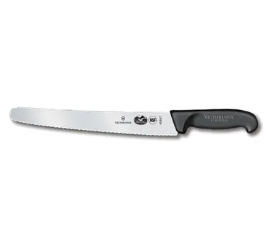 Redefine Restaurant Excellence with the Victorinox Swiss Army, 5.2933.26, Knife, Bread / Sandwich. This high-quality knife is a must-have for any commercial restaurant. With its 10-1/4" blade and wavy edge, it effortlessly slices through bread and sandwiches, ensuring precise and clean cuts every time. The black Fibrox Pro handle provides a comfortable grip, while the slip-resistant design ensures safety in a fast-paced kitchen environment. Made by Victorinox Swiss Army, a trusted name in cutlery, this knife is built to last and withstand the demands of a busy restaurant kitchen. Its NSF certification guarantees its quality and suitability for commercial use. Whether you're running a bakery, deli, or sandwich shop, this bread knife is the perfect tool to enhance your food preparation and presentation. Elevate your restaurant's culinary experience with the Victorinox Swiss Army Bread / Sandwich Knife.