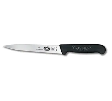 Upgrade your culinary instrument with the Victorinox Swiss Army, 5.3703.18 Fillet Knife. Designed for commercial restaurant use, this knife is a must-have for any professional chef. The 7" stiff blade is perfect for filleting fish, ensuring precision and efficiency in every cut. The black Fibrox Pro handle provides a comfortable grip, while its slip-resistant design ensures safety in a fast-paced kitchen environment. NSF certified, this knife meets the highest standards of quality and hygiene. With its durable construction and exceptional performance, the Victorinox Swiss Army Fillet Knife is built to withstand the demands of a busy commercial kitchen. Whether you're preparing delicate seafood dishes or trimming meat, this knife will become your go-to tool. Upgrade your culinary arsenal today and experience the difference that the Victorinox Swiss Army Fillet Knife can make in your restaurant.