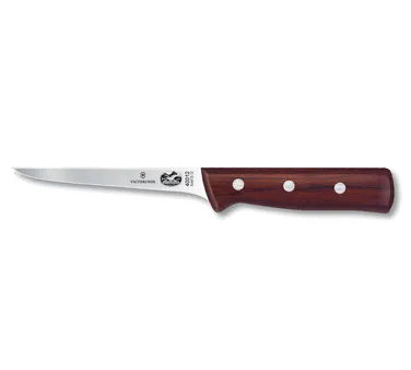 Efficiency Meets Culinary Innovation with the Victorinox Swiss Army, 5.6406.12, Knife, Boning. This high-quality boning knife is a must-have tool for any commercial restaurant. With its 5" straight, narrow, and stiff blade made of high carbon steel, it effortlessly glides through meat, making it perfect for deboning poultry, fish, and other meats. The rosewood handle provides a comfortable grip, ensuring precision and control during use. Designed by Victorinox Swiss Army, a trusted name in cutlery, this knife is built to withstand the demands of a busy kitchen. Its durability and sharpness make it a reliable choice for professional chefs and butchers. Whether you're running a bustling restaurant or a small eatery, this boning knife will enhance your efficiency and elevate your culinary creations. Invest in the Victorinox Swiss Army, 5.6406.12, Knife, Boning, and experience the difference it makes in your commercial kitchen.