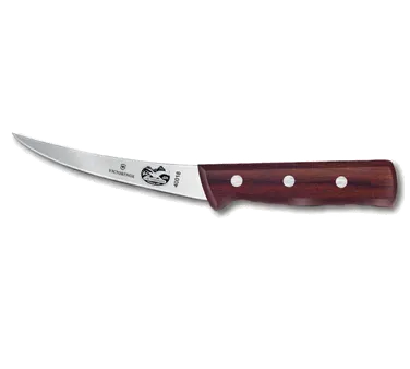 Create Culinary Masterpieces with the Victorinox Swiss Army, 5.6616.12, Knife, Boning. This high-quality boning knife is a must-have tool for any commercial restaurant. With its 5" curved and flexible blade made of high carbon steel, it effortlessly glides through meat, making it perfect for deboning poultry, fish, and other meats. The rosewood handle provides a comfortable grip and adds a touch of elegance to your kitchen. Designed by Victorinox Swiss Army, a trusted name in cutlery, this knife is built to last and withstand the demands of a busy restaurant kitchen. Whether you're a professional chef or a home cook looking to elevate your culinary skills, this boning knife will help you achieve precision and efficiency in your food preparation. Invest in the Victorinox Swiss Army, 5.6616.12, Knife, Boning and experience the difference it makes in your kitchen.