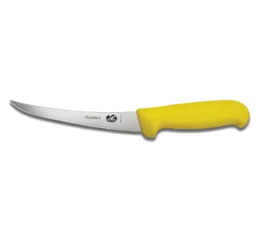 Enhance Your Restaurant's Culinary Efficiency with the Victorinox Swiss Army, 5.6618.15, Knife, Boning. This professional-grade boning knife is designed to streamline your restaurant's food preparation process. With its 6" curved and flexible blade, this knife effortlessly glides through meat, making it perfect for deboning poultry, fish, and other meats. The yellow fibrox handle provides a comfortable and secure grip, ensuring precision and control while working. Crafted from carbon stainless steel, this knife offers exceptional durability and resistance to corrosion, ensuring it can withstand the demands of a busy commercial kitchen. NSF certified, this knife meets the highest standards of safety and hygiene. Whether you're a professional chef or a restaurant owner, the Victorinox Swiss Army, 5.6618.15, Knife, Boning is a must-have tool that will enhance your restaurant's culinary efficiency and deliver exceptional results.