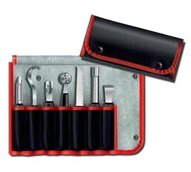 Equip Your Kitchen for Excellence with the Victorinox Swiss Army, 7.4012.1 Garnish Set. This 8-piece kit is a must-have for any commercial restaurant looking to elevate their culinary creations. With black polypropylene handles, these garnishing tools are not only durable but also comfortable to use for extended periods. Each set includes a variety of essential tools, such as a peeler, melon baller, and channel knife, allowing chefs to create intricate and visually stunning garnishes. Whether you're garnishing cocktails, salads, or desserts, this kit provides the versatility and precision needed to impress your customers. With its sleek design and professional-grade construction, this garnish set is a valuable addition to any commercial kitchen. Elevate your dishes and leave a lasting impression with the Victorinox Swiss Army Garnish Set.