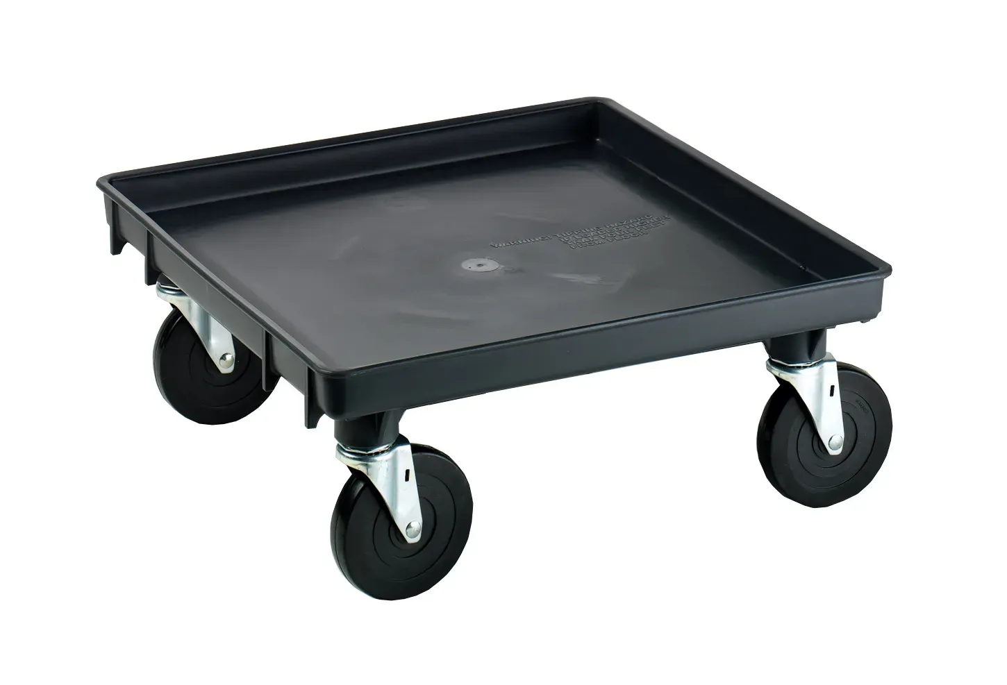 Transport heavy racks easily with the Traex rack dolly by Vollrath. It's made of recycled, impact-resistant copolymer plastic and features a rib-reinforced base for maximum strength and stability. Four sturdy casters ensure swift maneuvering, helping you to move up to 350 pounds. Additional items, like handles and covers, are sold separately, so you can determine what pieces would best suit your needs.